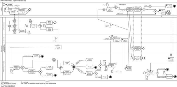 Soweit der Geschäftsprozess Angebotserstellung, der damit endet. Im positiven Fall stößt er den nachfolgend skizzierten Geschäftsprozess Auftragsstart an. |