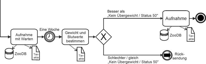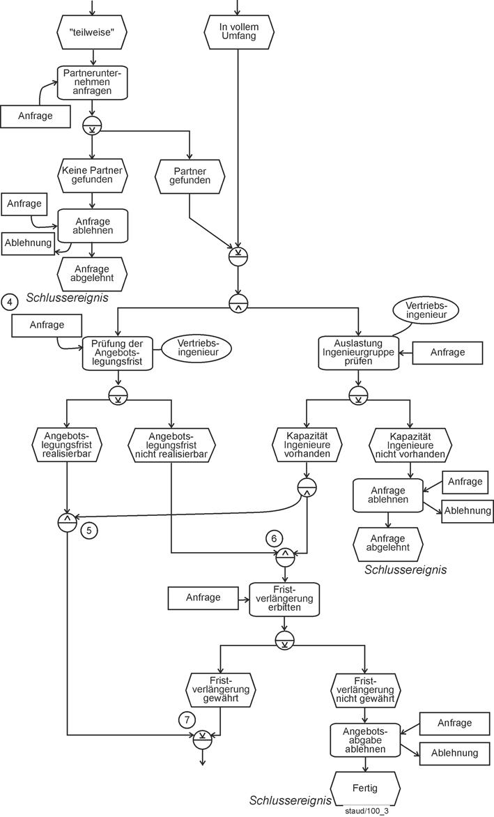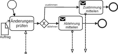 Die folgende Abbildung zeigt den Fortgang. Obige Prüfung kann zu drei Ergebnissen führen, entsprechend werden drei Ereignisse eingefügt. Die Auftragserteilung erfolgte ... |