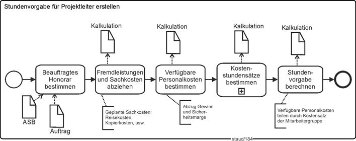 Die Ausführungen zu Stunden- und Kostenschätzungen usw. sind Funktionsaspekte und nicht Prozessaspekte [Anmerkung] und können deshalb bei einer Standardprozessmodellierung ignoriert werden. |
