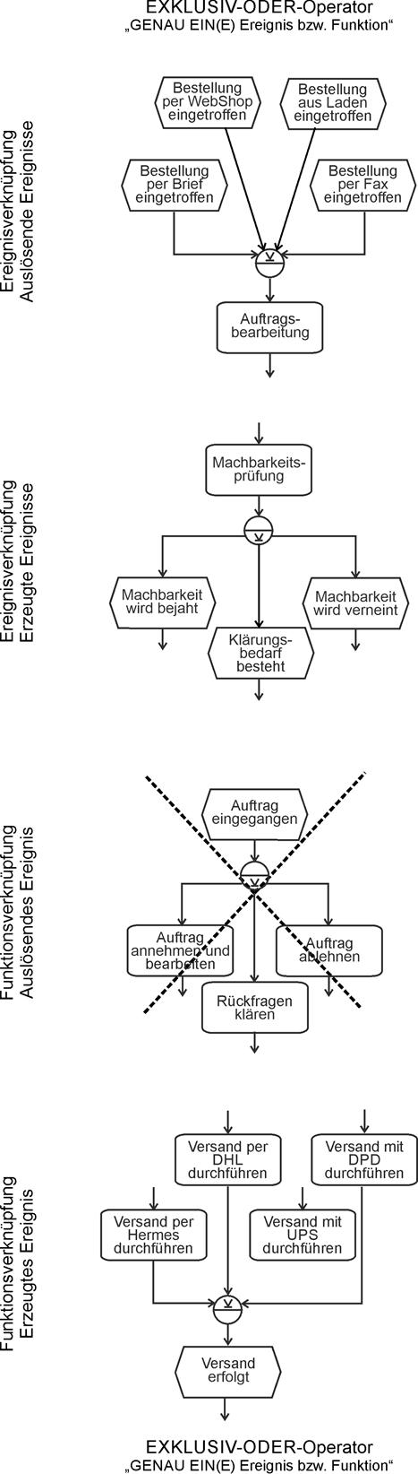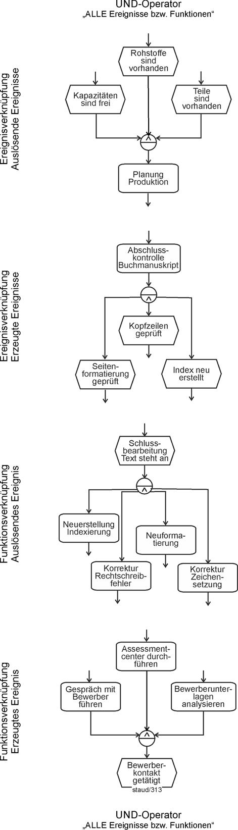 Mögliche Verknüpfungen von Ereignissen und Funktionen im Kontrollfluss. |