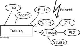 Dieser Text soll bei der Erreichung dieses Ziels helfen. Denn am Anfang des Datenbankdesigns, gleich nach oder mit den konzeptionellen Überlegungen, folgt die semantische Datenmodellierung. Sozusagen die erste Fixierung der konzeptionellen Überlegungen in Richtung Datenbank. Noch ganz allgemein, noch ohne Ausrichtung an einer Datenbanktheorie. |