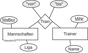 Die folgende Abbildung zeigt ein wiederum sehr einfaches Datenmodell zum Thema Qualifikation, bei dem der Zeitaspekt mitmodelliert wurde. |