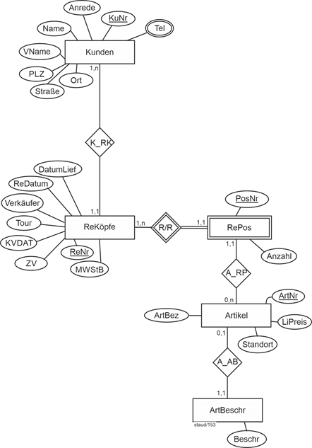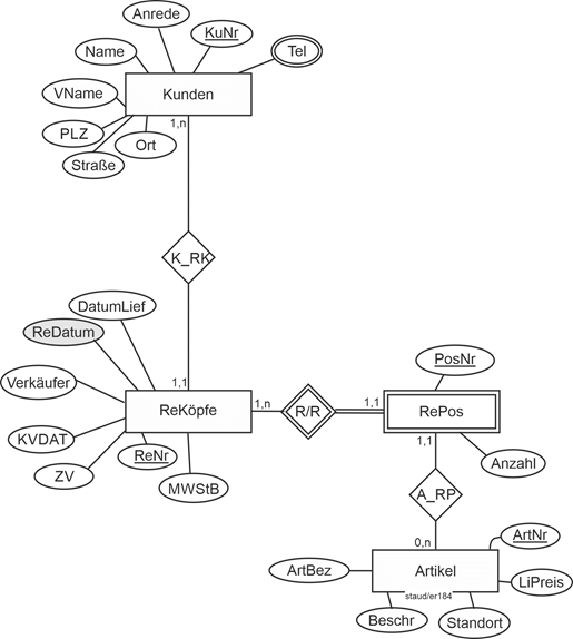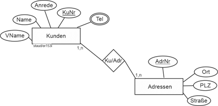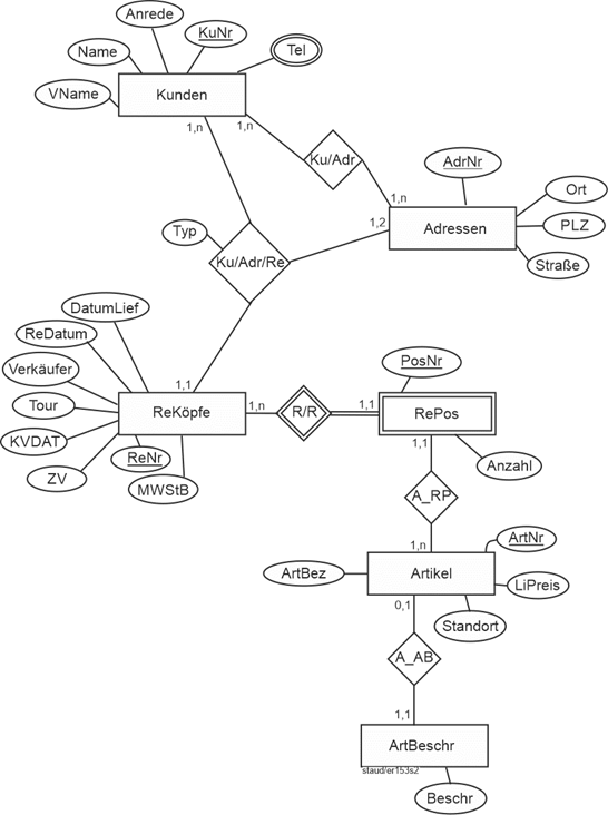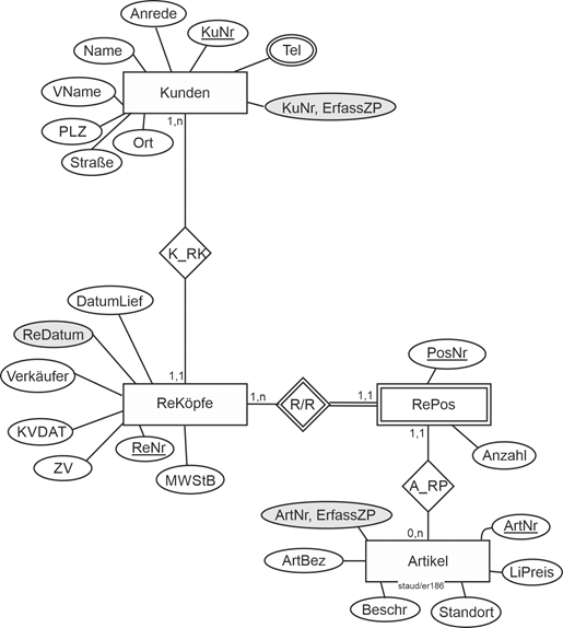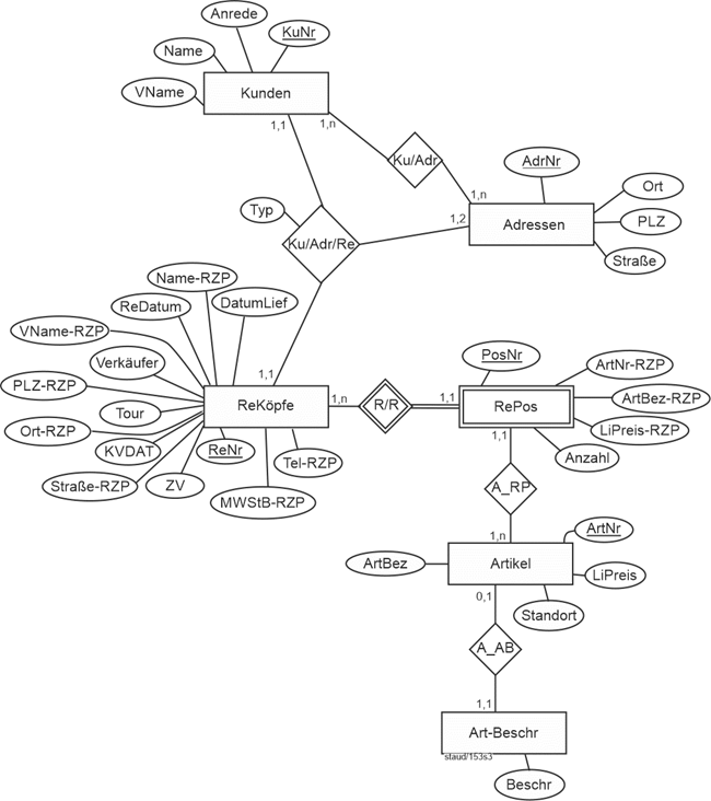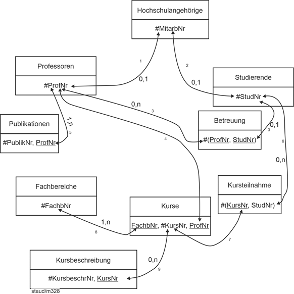 Abbildung 13.4-5: Vom Semantischen Datenmodell zur Relationalen Datenbank |