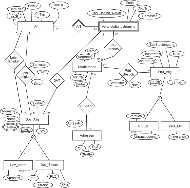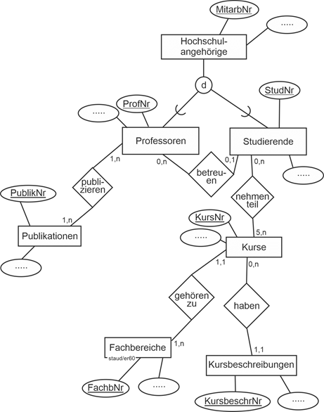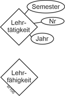 In einer Hochschule könnten folgende Grundsätze unserer Daseins zur Semantik gehören und bei der Gestaltung einer Datenbank zum Lehrbetrieb wichtig sein: |