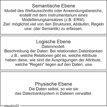 - Semantik meint hier im Datenbankkontext die Bedeutung, den Bedeutungsgehalt der Informationen, die über den Anwendungsbereich gewonnen wurden.