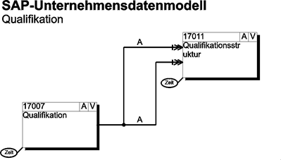 Abbildung 13.4-3: Datenmodell Qualifikation Quelle für alle Datenmodelle dieses Abschnitts: SAP R/3. Vom Verfasser 2005 erfasst und grafisch bearbeitet. |
