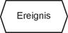 Die grafische Darstellung von Ereignissen in Ereignisgesteuerten Prozessketten erfolgt als ein die Breite gezogenes Sechseck mit der Benennung des Ereignisses in der Mitte des Sechsecks. |