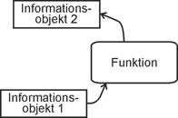 Die grafische Darstellung von Informationsobjekten erfolgt als Rechteck mit der Benennung in der Mitte. Jedes Informationsobjekt ist mit einer Funktion verbunden. Bei dieser Beziehung zwischen Informationsobjekten und Funktionen wird mittels einer Pfeilspitze unterschieden, ob die Informationen einfließen, d.h. im Rahmen der Aufgabenerledigung benötigt werden, oder ob sie dabei entstehen. Die Pfeilspitze drückt die Richtung des Informationsflusses aus. |