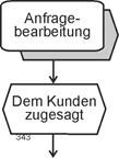Da in der Prozessbeschreibung an dieser Stelle gleich das positive Endergebnis, der Aufruf des anschließenden Geschäftsprozesses Auftragsabwicklung angeführt wird, kann hier durch einen Prozesswegweiser auf eine entsprechende EPK verwiesen werden. Dieses Methodenelement dient als Verweis auf einen anderen Prozess. Die obige Abbildung zeigt den damit erreichten Stand im Geschäftsprozess Anfrageprüfung, die folgende den Beginn des Geschäftsprozesses Auftragsabwicklung. |