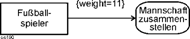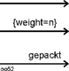 Über eine Aktivitätskante kann zu einem Zeitpunkt eine beliebige Anzahl von Token passieren. Die Gewichtung schreibt die Mindestanzahl von Tokens vor, die zur selben Zeit über die Kante gehen müssen. Das ist eine Festlegung, die jedesmal überprüft bzw. berechnet wird, wenn ein neuer Token für die Quelle zur Verfügung steht. |