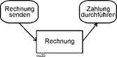 Dieses „Aufeinanderfolgen“ kann, so deutet es die Stelle (9) an, auch durch Informationen „begleitet“ sein: Beim Voranschreiten der Tätigkeitsfolge von Rechnung senden zu Zahlung durchführen spielt die Rechnung eine Rolle. |