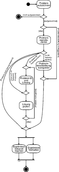 | Als nächstes nun ein Beispiel mit mehr (ernsthaftem) Prozesscharakter. Es ist die oben betrachtete Problembehandlung, hier allerdings aus Darstellungsgründen in eine senkrechte Anordnung gebracht.