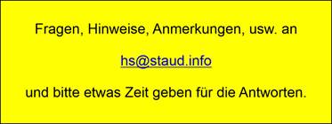 Diese HTML-Seiten wurden mithilfe eines von mir erstellten Programms erzeugt: WebGenerator (Version 2015-1). Es setzt Texte in HTML-Seiten um und ist noch in der Entwicklung. Die „maschinelle“ Erstellung erlaubt es, nach jeder Änderung des Textes diesen unmittelbar neu in HTML-Seiten umzusetzen. Da es nicht möglich ist, nach jeder Neuerstellung alle Seiten zu prüfen, ist es durchaus möglich, dass irgendwo auf einer „abgelegenen“ Seite Fehler auftreten. Ich bitte dafür um Verzeihung und um Hinweise (staud@gmx.info). |
