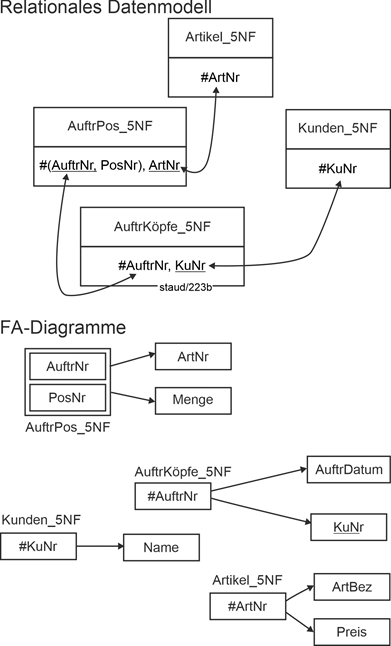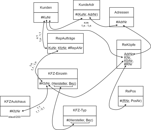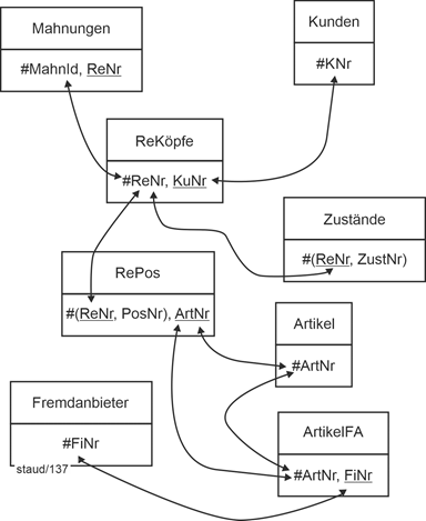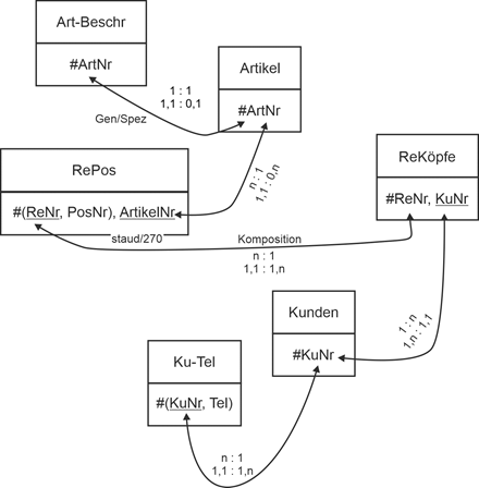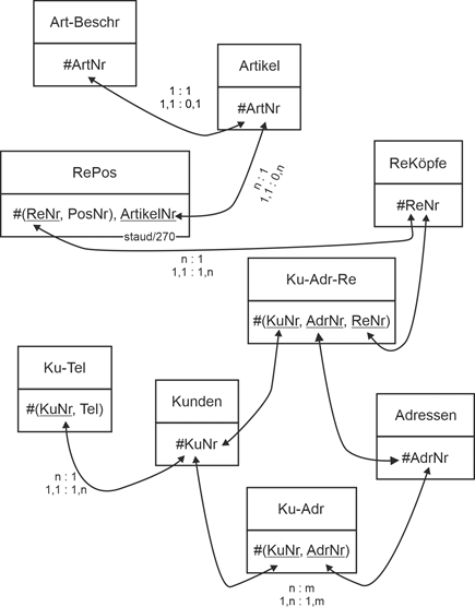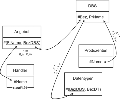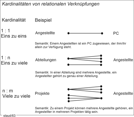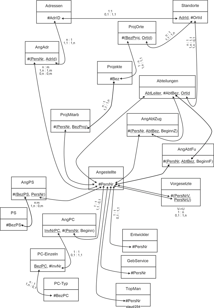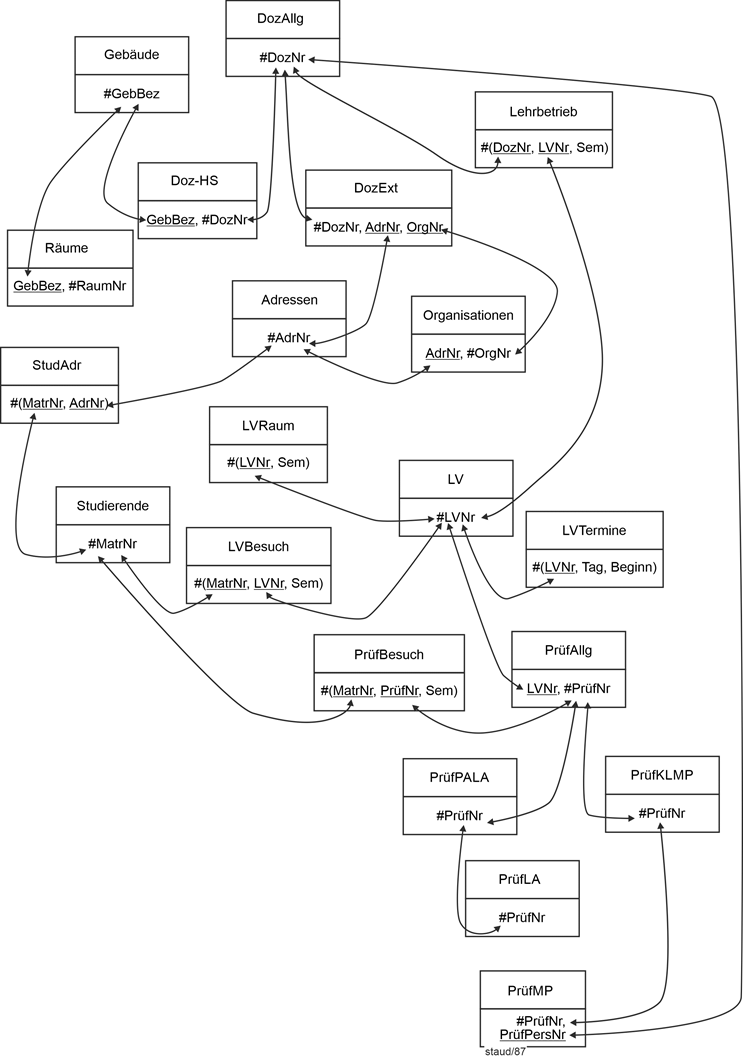 - Zahlreiche Beispiele für relationale Datenmodellierung, einige mit Lösungsweg, einige ohne. Dies ist motiviert durch die Erfahrung aus jahrzehntelanger Lehr- und Beratungstätigkeit, dass Datenmodellierung beim Umgang mit Datenbanken die größten Probleme macht und vielerorts nur eingeschränkt beherrscht wird.