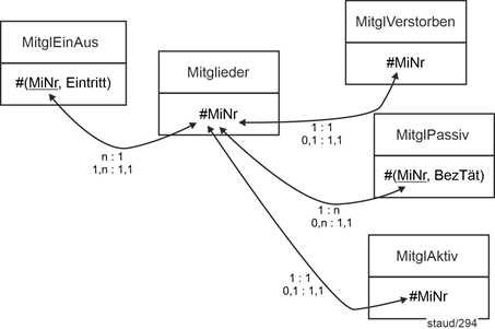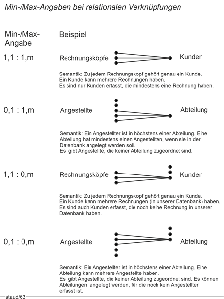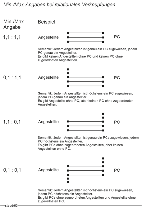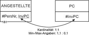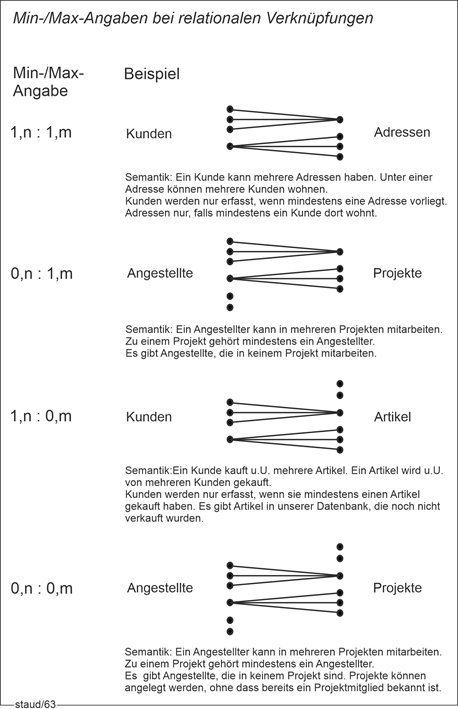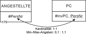 - Die Erweiterung der Kardinalitäten zur durchgängigen Betrachtung von Min-/Max-Angaben bei relationalen Verknüpfungen („wieviele Teilnehmer mindestens, wieviele höchstens“). Auch dies sollte bei einer modernen Modellierung so sein.