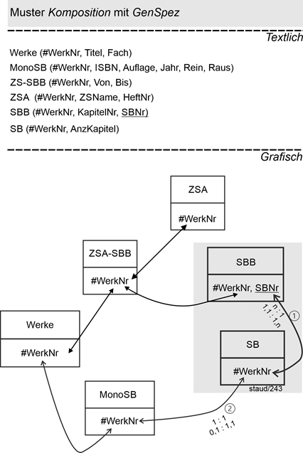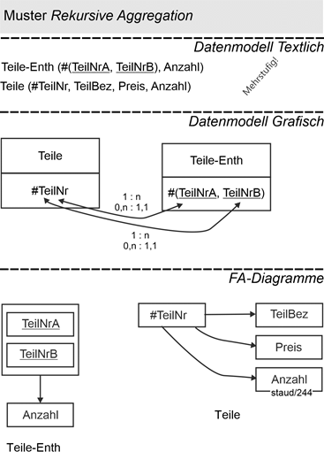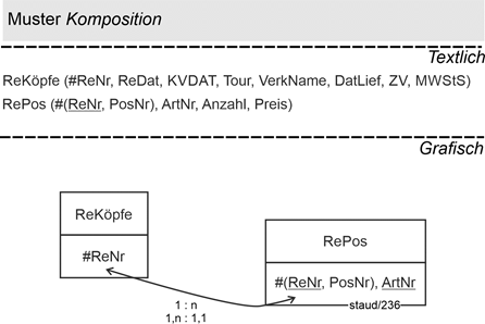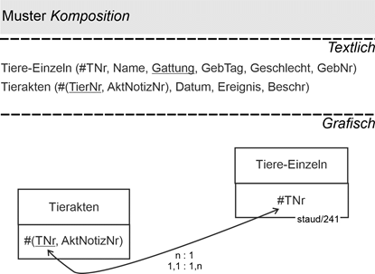 - Die intensive Betrachtung von Mustern in Anwendungsbereichen und in relationalen Datenmodellen(„Semantik sucht Syntax“). Dies sollte die konkrete Datenmodellierung erleichtern.