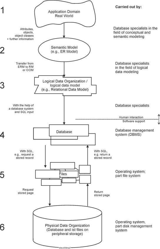 The following figure illustrates the overall process of database design, from the application domain to the database. |