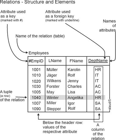 Abbildung 15.2-1: List of the relations in a database with some of their characteristics. |
