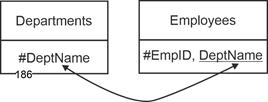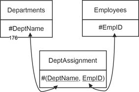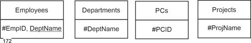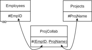 - Designations of relationship names are slightly smaller and set in Arial: Employees, Departments, Projects.