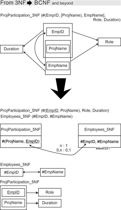 - Chapter 6 shows how the relational theory is used to optimize the data model. The tool for this purpose consists of six normal forms. The focus - due to their great practical relevance - is on the first three: 1NF, 2NF, and BCNF.