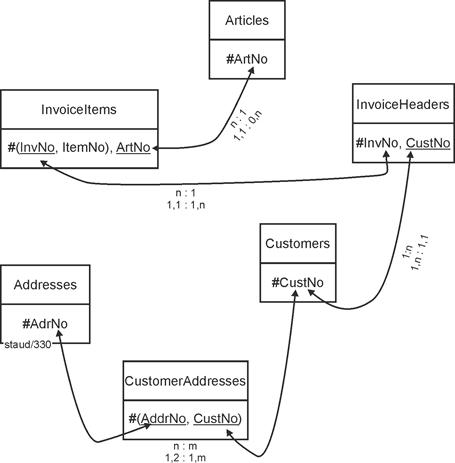 Abbildung 15.1-1: MySQL view of the relational data model Invoices |