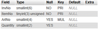 SELECT ih.InvNo, ih.CustNo, ih.InvDate, ii.ItemNo, ii.ArtNo, ii.Quantity, a.Description, a.Price