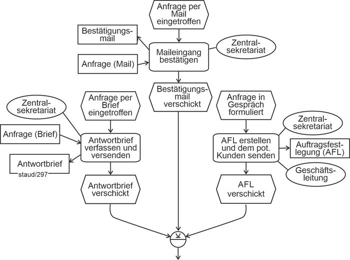 Geschäftsprozesse bestehen - sehr vereinfacht ausgedrückt - aus zielgerichteten aneinandergereihten Tätigkeiten, aus Tätigkeitsfolgen also. Bei solchen Tätigkeiten, die Menschen oder Anwendungsprogramme realisieren, um in Organisationen die gesetzten Ziele zu erreichen, werden in der Fachliteratur die Begriffe Aufgabe und Vorgang verwendet. |