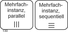 Das erste Element (von links) wird benutzt, wenn Subprozesse gestartet werden sollen. Es wird nur für eingebettete Kompensationssubprozesse genutzt und wird aktiv, wenn eine Kompensation ansteht. |