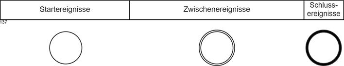 Das vierte Element ist ein Schlussereignis. Es signalisiert, dass Kompensation bzgl. einer Aktivität nötig ist. Es kann in jedem Subprozess oder Prozess benutzt werden. Entweder im normalen Fluss auf derselben Ebene wie der Subprozess oder in einem Kompensations-Subprozess, der im Subprozess enthalten ist, der eine Aktivität enthält. Kann keine zugehörige Aktivität identifiziert werden, werden alle erfolgreich abgeschlossenen Aktivitäten in umgekehrter Reihenfolge kompensiert, die für das Kompensationsendereignis sichtbar sind. |