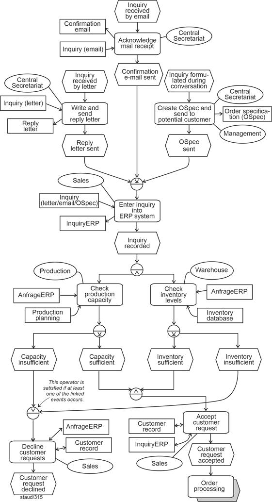 Significant changes have also occurred in the methods used over the past ten years. New methods have emerged, such as BPMN, while others that never truly gained acceptance in process modeling - such as UML activity diagrams - have largely disappeared. Event-driven Process Chains (EPCs), however, remain the ideal instrument for modeling processes in the context of an as-is analysis: they are simple, quick to learn, and nevertheless provide expressive process models, as will hopefully become clear in this text. One cannot reasonably expect more from a method. If, within the scope of requirements engineering, a more implementation-oriented modeling of processes is desired, other instruments should be chosen - for example, BPMN. |