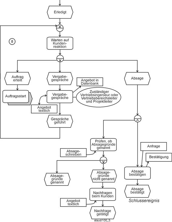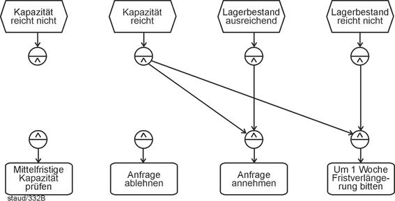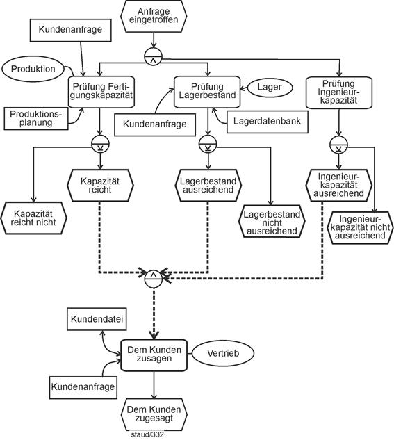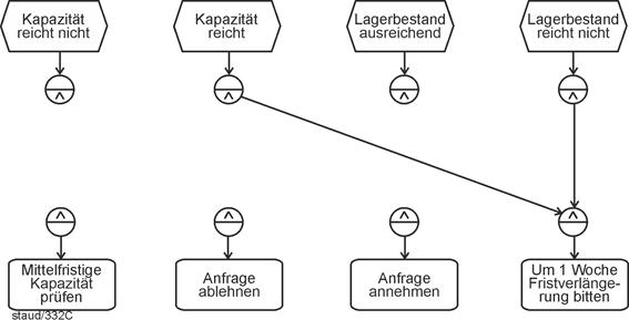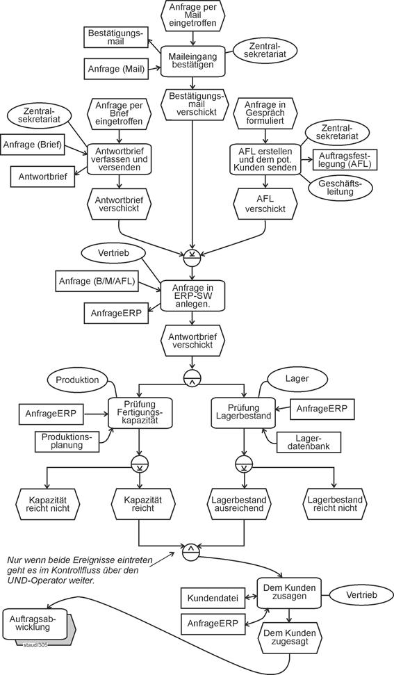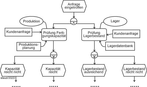 - Fragen der Semantik und ihrer Umsetzung in syntaktisch korrekte EPK-Fragmente ("Semantik sucht Syntax") stehen im Mittelpunkt von Kapitel 6. Dazu werden die wichtigsten semantischen Muster, die in Geschäftsprozessen vorkommen, und ihre Umsetzung in Ereignisgesteuerte Prozessketten gezeigt.