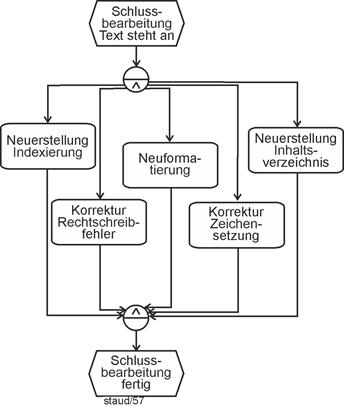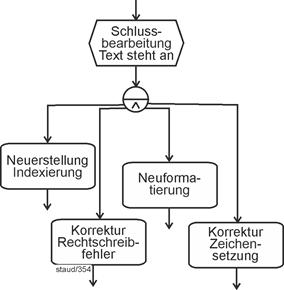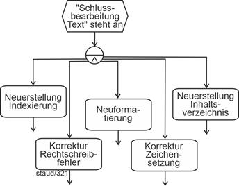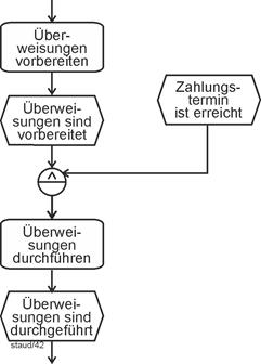 "Haben zwei Aufgaben weder eine direkte noch eine indirekte Verbindung, so sind sie nebenläufig, d.h., sie können nacheinander oder nebeneinander ablaufen." [Österle 1995, S. 95] "Die Ablauffolge beschreibt, ob eine Aufgabe nach einer anderen Aufgabe (Präzedenz), gleichzeitig mit ihr (Parallelität) oder unabhängig von ihr (Nebenläufigkeit) ablaufen soll." [Österle 1995, S. 51] |