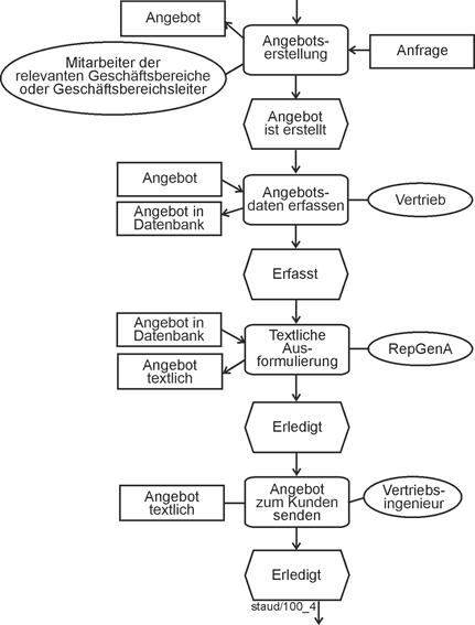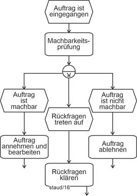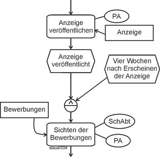 Geschäftsprozesse bestehen - sehr vereinfacht ausgedrückt - aus zielgerichteten aneinandergereihten Tätigkeiten, aus Tätigkeitsfolgen also. Bei solchen Tätigkeiten, die Menschen oder Anwendungsprogramme realisieren, um in Organisationen die gesetzten Ziele zu erreichen, werden in der Fachliteratur die Begriffe Aufgabe und Vorgang verwendet. |