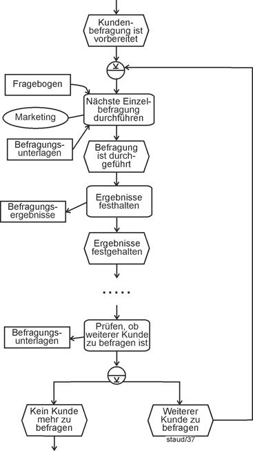 - EPKs über mehrere Seiten. Einzelne Ereignisgesteuerte Prozessketten in diesem Kapitel erstrecken sich über mehrere Seiten. Dazu werden jeweils die Kontrollflusszweige am unteren Ende auf der folgenden Seite ohne spezielle Markierung weitergeführt. Um den Zusammenhang zu verdeutlichen, wird das letzte Element der vorangehenden EPK in der nachfolgenden wiederholt. Falls Rückschleifen auf eine vorangehende Seite zurückgeführt werden müssen, werden sie besonders gekennzeichnet.