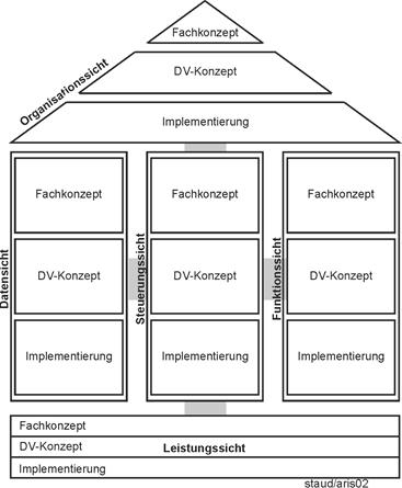 - Wegen seiner großen Bedeutung für die Methode EPK wird im Anhang kurz das ARIS-Konzept von Scheer vorgestellt. Es ist trotz seines Alters immer noch ein elementares Grundmuster für die Gestaltung der IT, die Analyse von Geschäftsprozessen und die Erstellung von Ereignisgesteuerten Prozessketten.