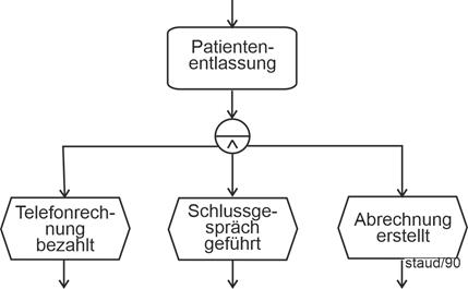 Hier die abstrakte Darstellung einer solchen Prozesssituation: A1, A2 und A3 werden auf eine bestimmte Weise realisiert, dann geht es weiter zu A4. |