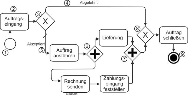 Varianten dieses Geschäftsprozesses finden sich in [Staud 2024]: Abbildung 10.8-1 (Variante 1), Abbildung 10.9-3 (Variante 2), Abbildung 11.8-3 (Variante 3), Abbildung 14.3-1 (Variante 4) und Abbildung 14.4-1 (Variante 5) |