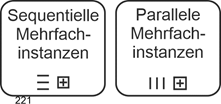 Das erste Element (von links) wird benutzt, wenn Subprozesse gestartet werden sollen. Es wird nur für eingebettete Kompensationssubprozesse genutzt und wird aktiv, wenn eine Kompensation ansteht. |