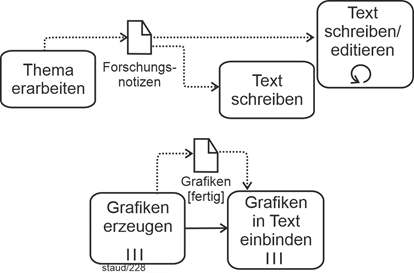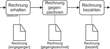 Geschäftsprozesse bestehen - sehr vereinfacht ausgedrückt - aus zielgerichteten aneinandergereihten Tätigkeiten, aus Tätigkeitsfolgen also. Bei solchen Tätigkeiten, die Menschen oder Anwendungsprogramme realisieren, um in Organisationen die gesetzten Ziele zu erreichen, werden in der Fachliteratur die Begriffe Aufgabe und Vorgang verwendet. |
