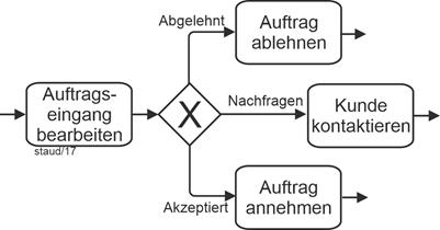 Für die Weiterführung des Prozesses über das Gateway werden die Bedingungen aller abgehenden Sequenzflüsse geprüft. |
