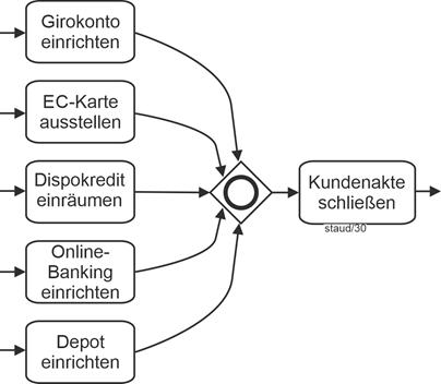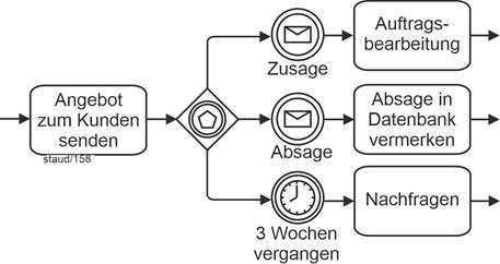 - Kapitel 13 vertieft dann die schon vorher getätigten Ausführungen zu Gateways, den Operatoren der BPMN.
