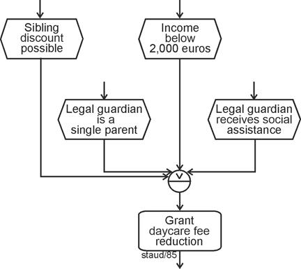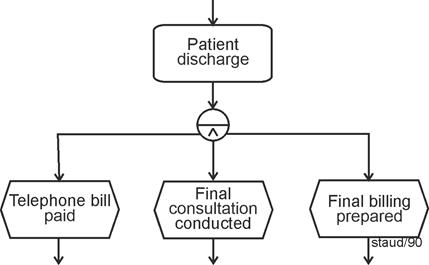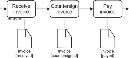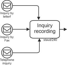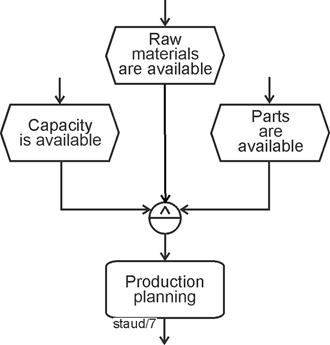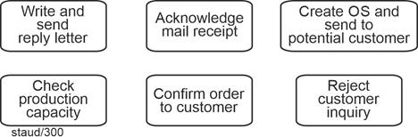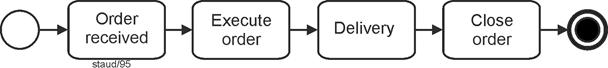 Tasks defined in this way can themselves be grouped - across multiple levels - up to the point where the entire corporate purpose is represented by a single task (e.g., "generate profit"). This is called aggregation, and it clarifies what plays an important role in the concrete modeling of business processes: |