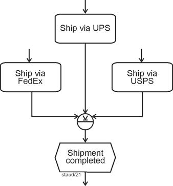 Figure 13.7-2: Merging and branching of sequence flows with a complex gateway Source: [OMG 2011, Figure 13.7, p. 437] |