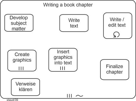 Activities are generally defined as tasks, which can be viewed at different levels. The lowest level, so to speak, consists of elementary tasks - tasks that cannot be further decomposed, or that are not further decomposed at the level of description in question. Several such elementary tasks are then grouped into a task. We adopt the following definition, which also highlights the natural expectation of a result and the executability by humans or machines [Österle 1995, p. 45]. Here, software has been added: |