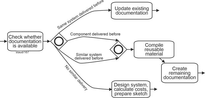 Significant changes have also occurred in the methods used over the past ten years. New methods have emerged, such as BPMN, while others that never truly gained acceptance in process modeling - such as UML activity diagrams - have largely disappeared. Event-driven Process Chains (EPCs), however, remain the ideal instrument for modeling processes in the context of an as-is analysis: they are simple, quick to learn, and nevertheless provide expressive process models, as will hopefully become clear in this text. One cannot reasonably expect more from a method. If, within the scope of requirements engineering, a more implementation-oriented modeling of processes is desired, other instruments should be chosen - for example, BPMN. |