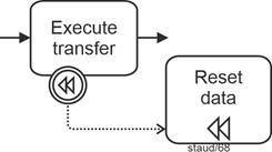 The third element in the normal flow indicates that compensation is necessary. It therefore triggers a compensation event. The sequence is then as follows: When an activity is identified and successfully completed, it is reversed. Of course, the activity must be "visible" to the compensation intermediate event (see below), i.e., it must be able to perceive the event. |